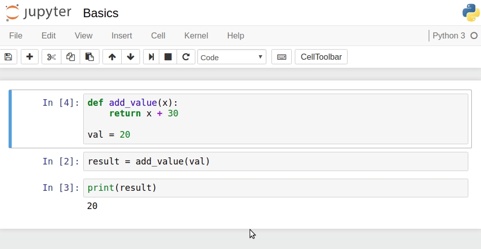 add_value()function is called in the second cell, although we defined it in the first cell.The variable